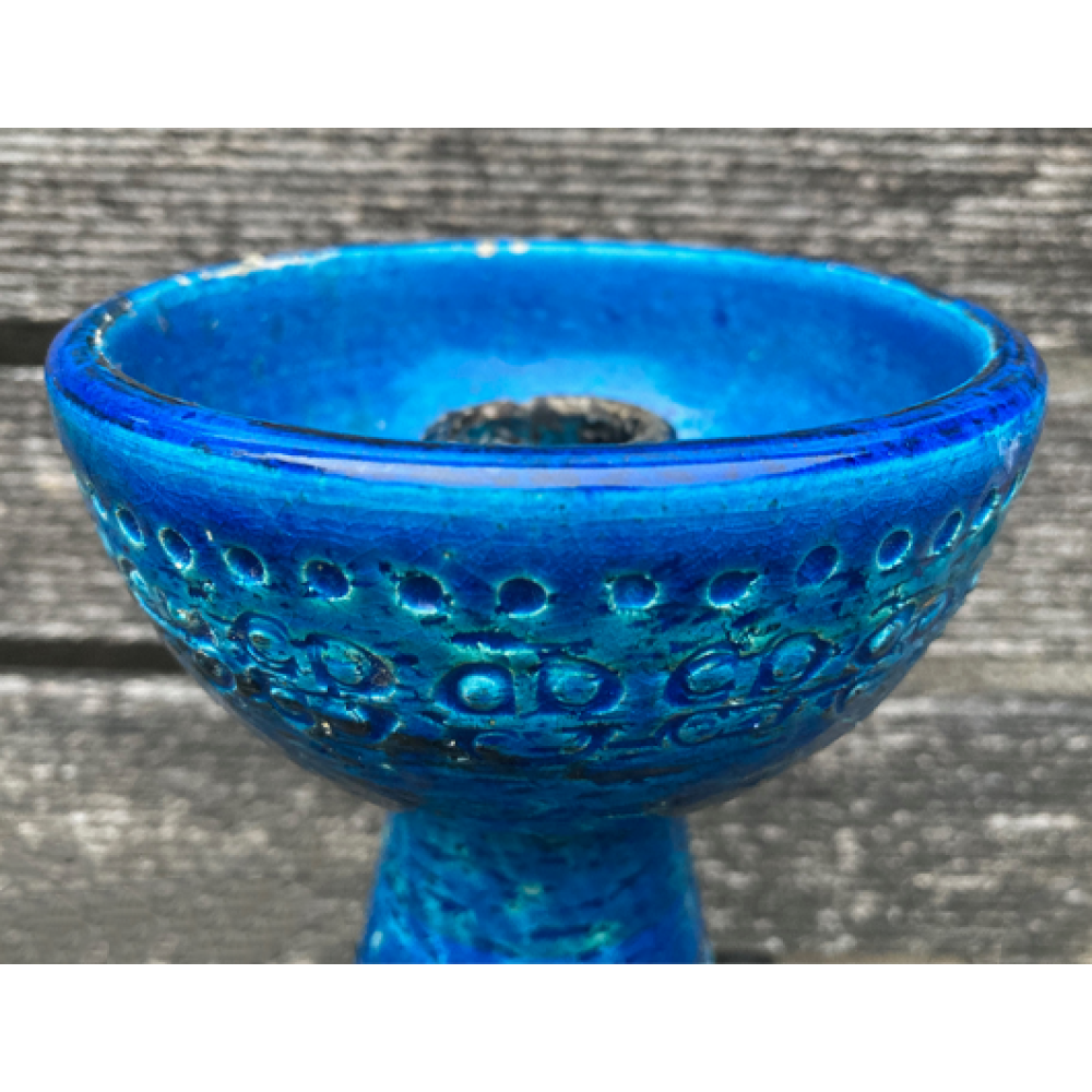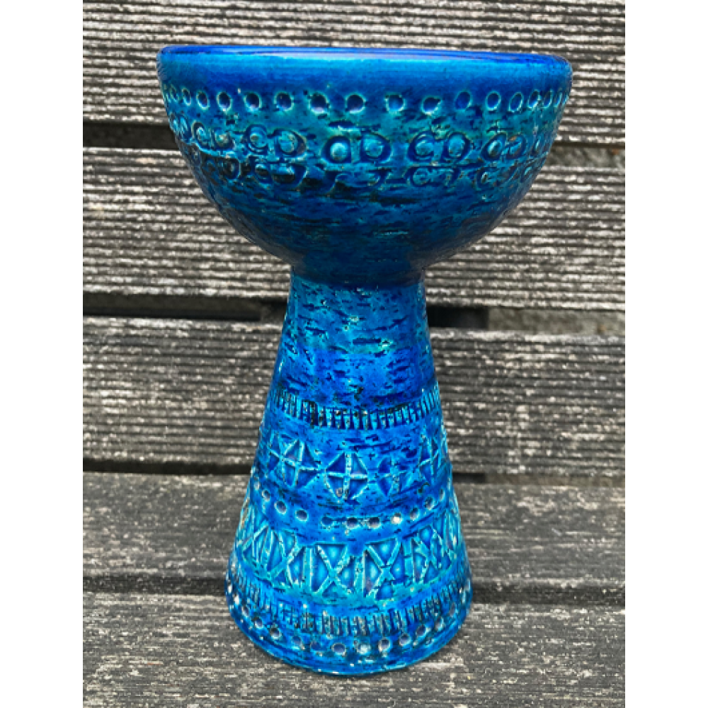 Aldo Londi voor Bitossi Ceramiche kandelaar in zijn beroemde Rimini Blu glazuur.