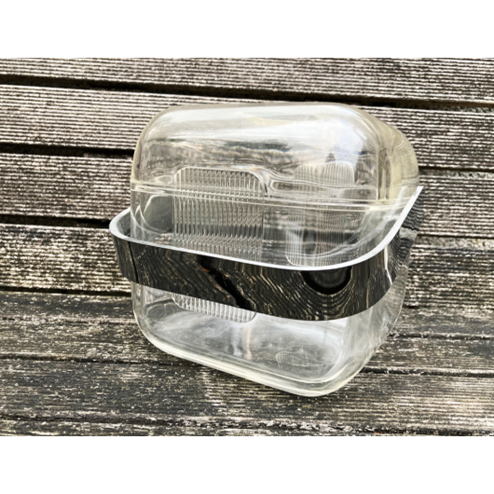Samengesteld uit drie elementen: de buitenste emmer, de binnenste opvangbak en het deksel.