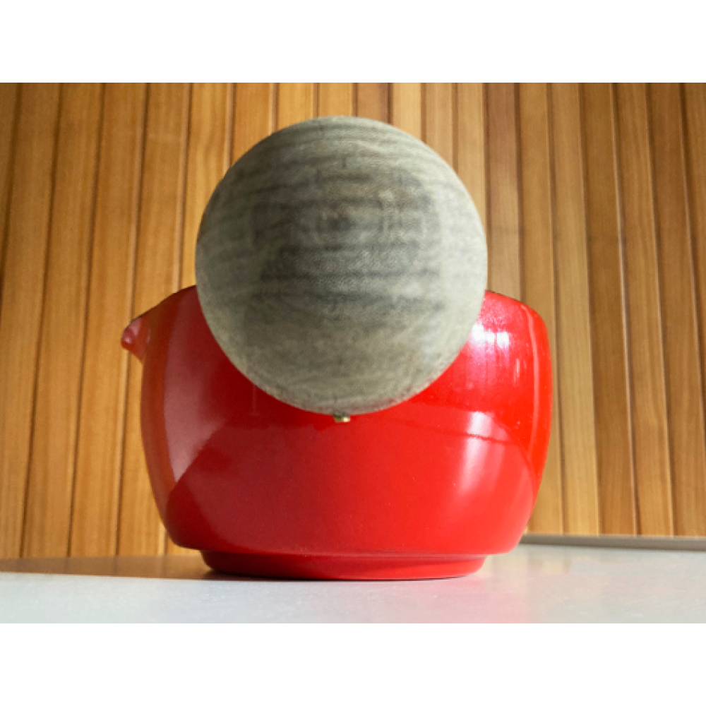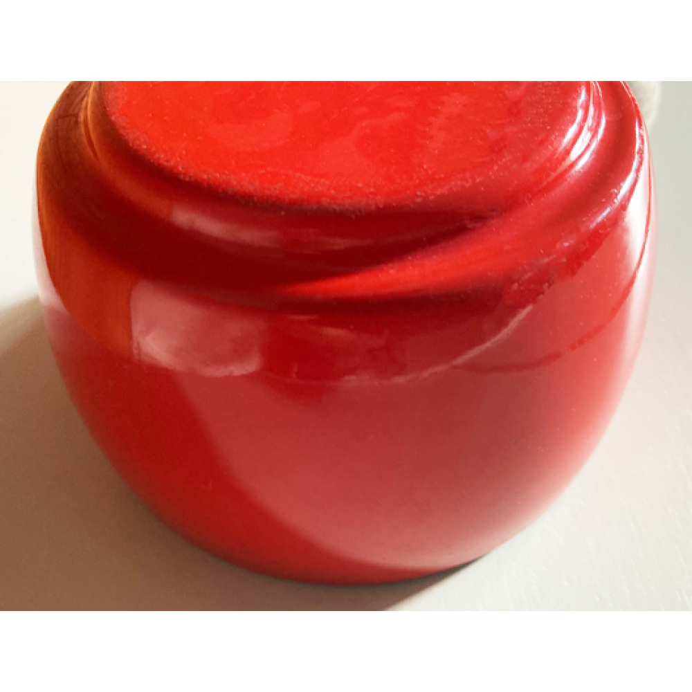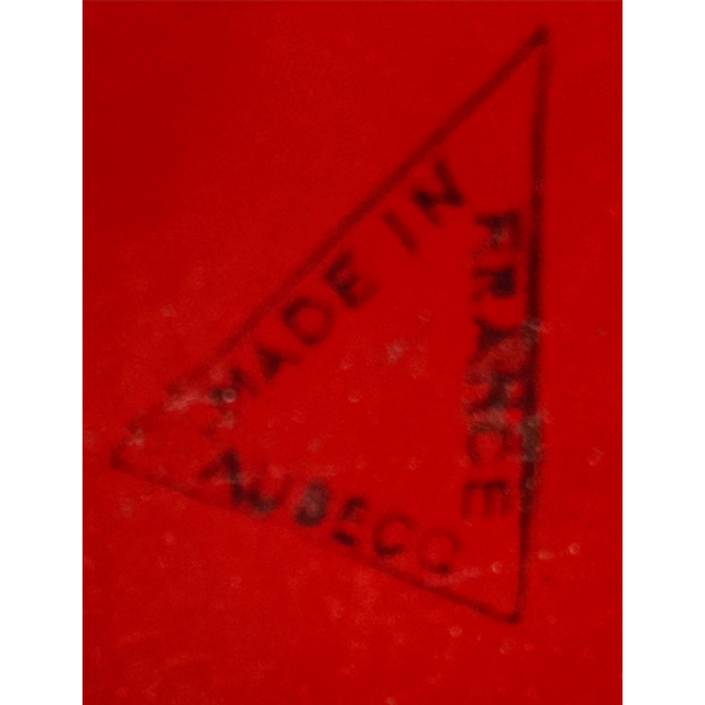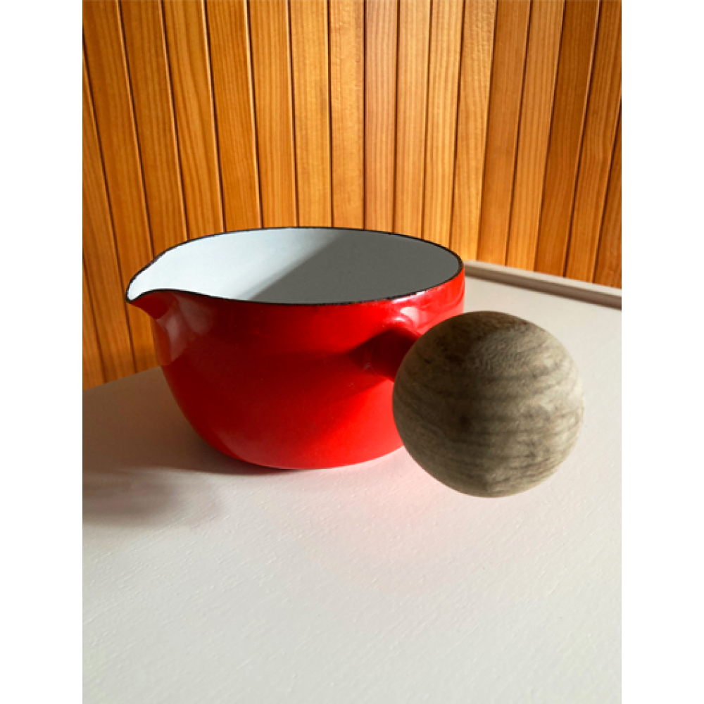 Deze kleine rood geëmailleerde sauspan komt uit Frankrijk en is geproduceerd bij Aubecq France.