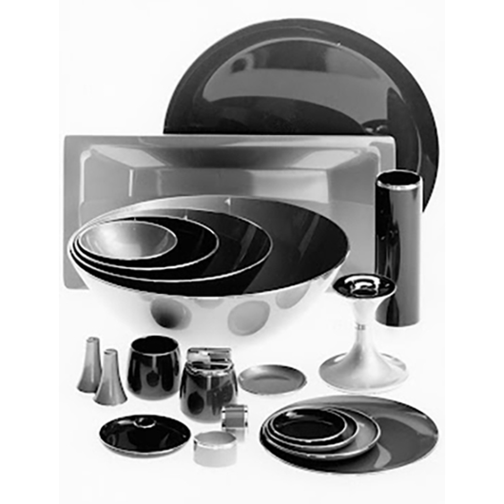 De zilverkleurige metalen afwerking siert de bovenrand en het ingesprongen ontwerp aan de onderkant.