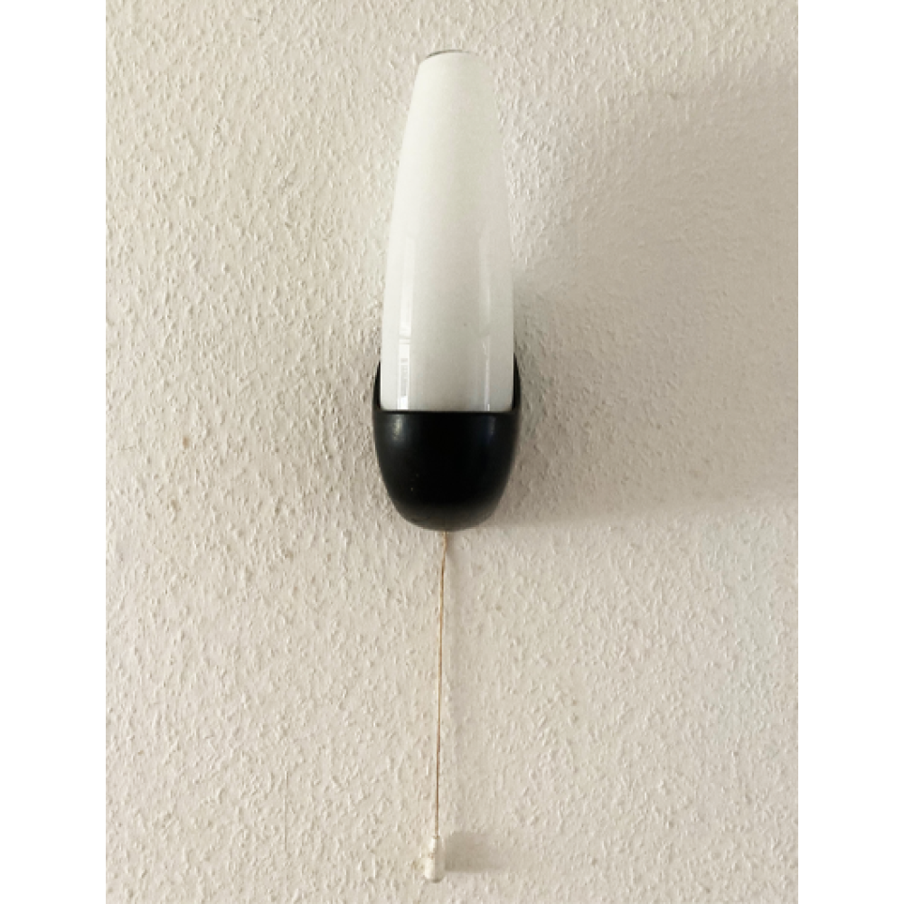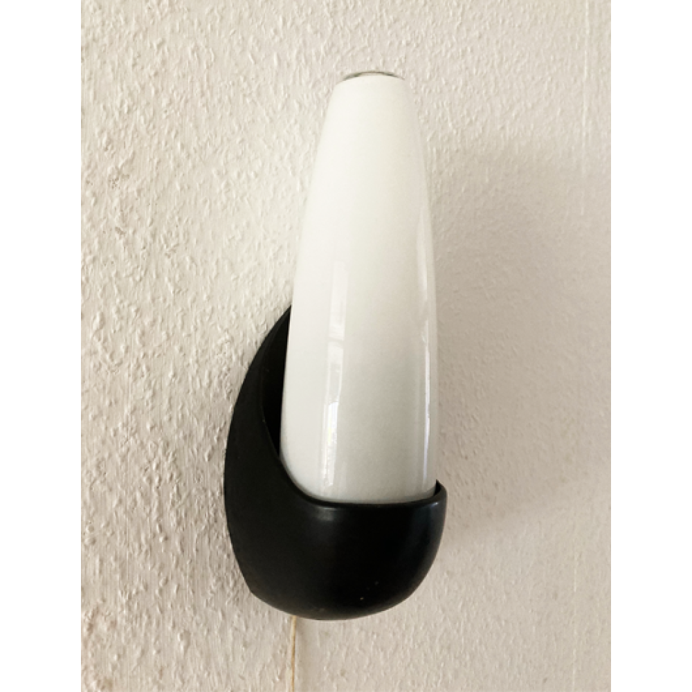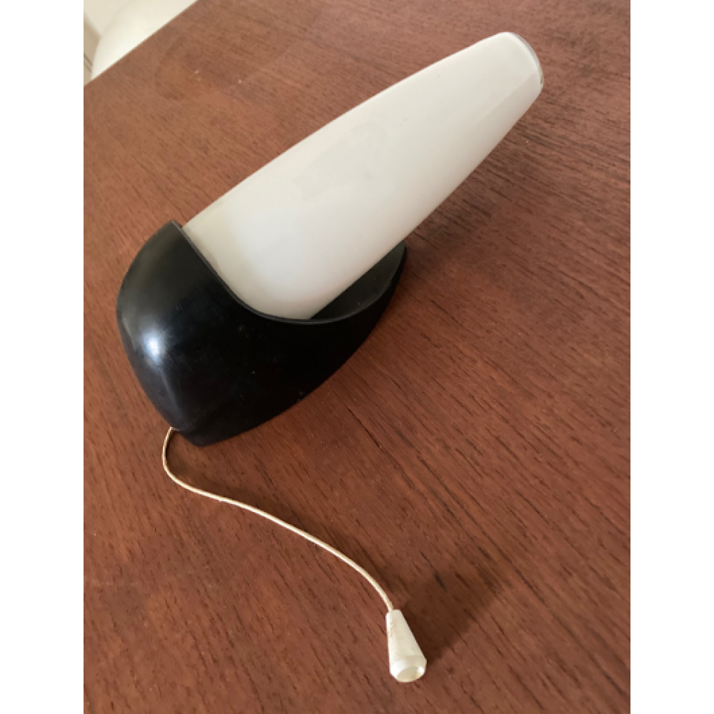 Zwart bakeliet en opaal glas wandlamp van de Belgische lampenfabriek Bo Niko uit 1960.