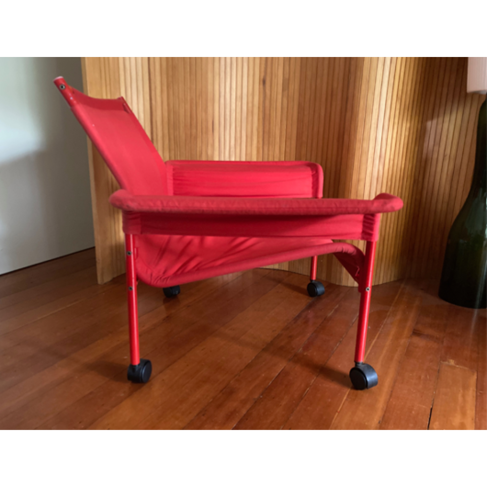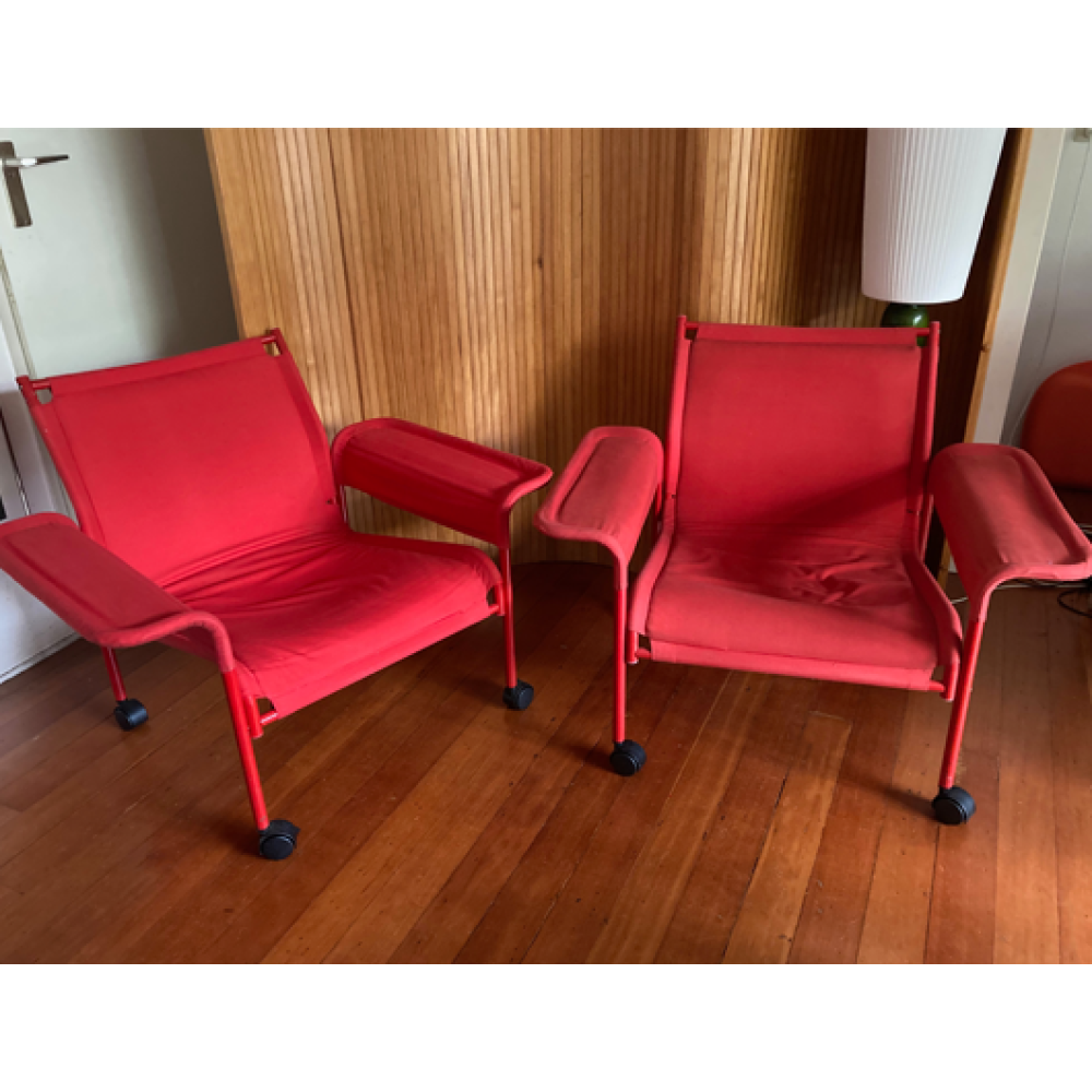 Er zijn drie Wing fauteuils op voorraad in de kleur rood waarbij er één nog nieuw,
