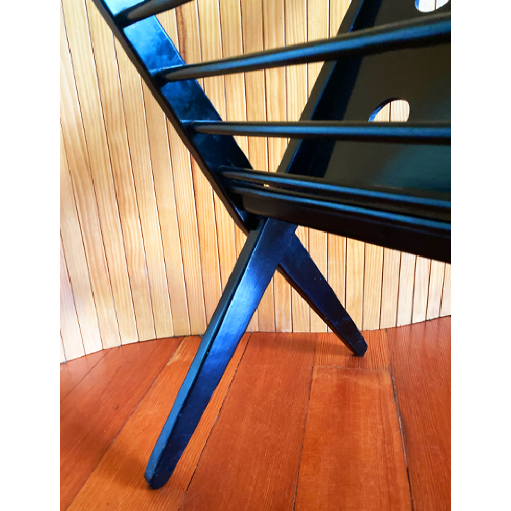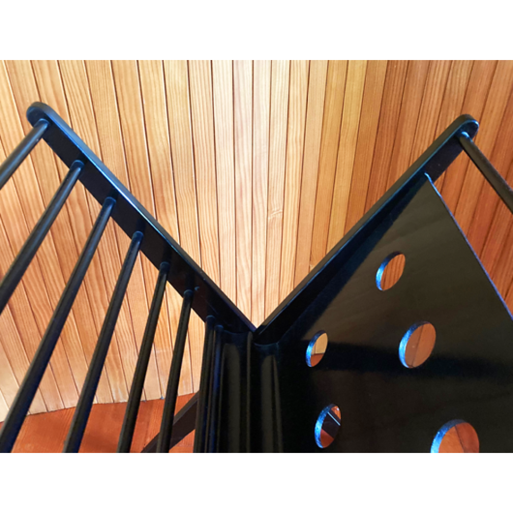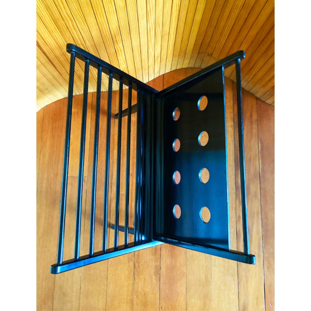 Het rek verkeert in originele staat en is zwart van kleur en is opklapbaar.