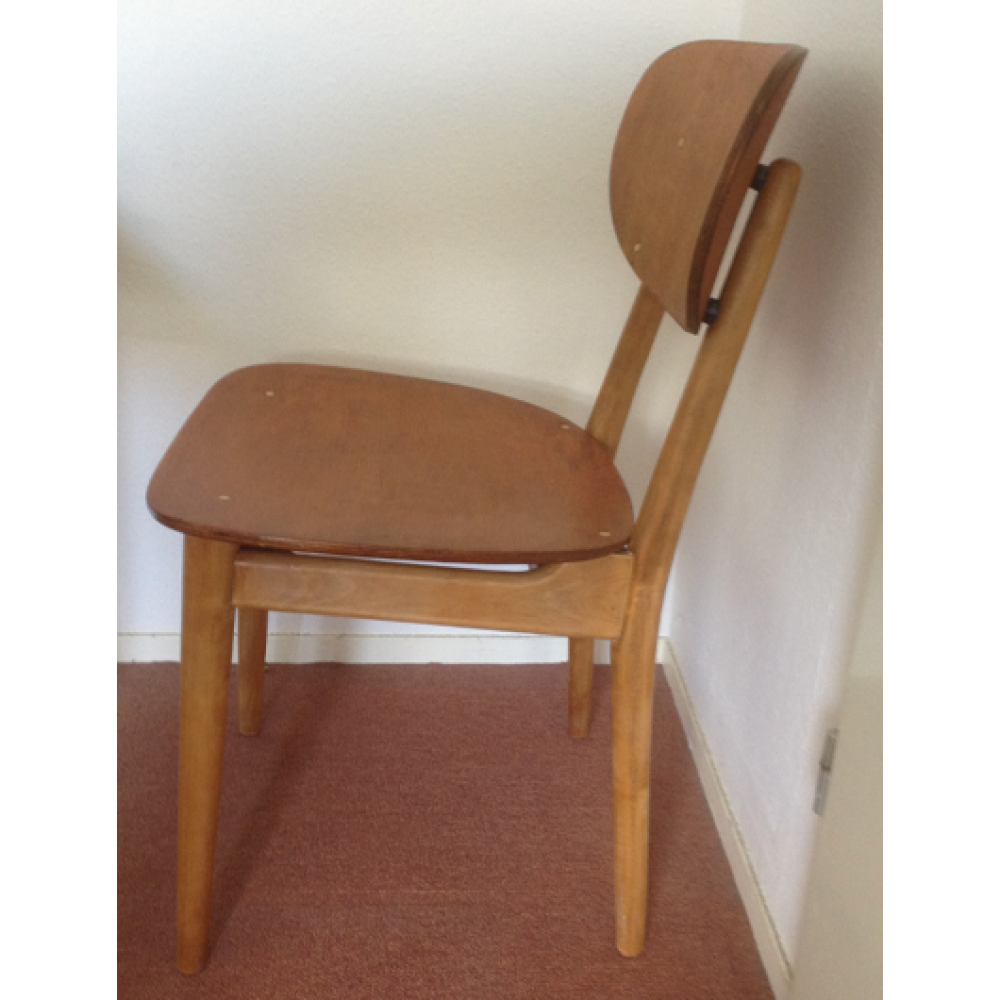 Pastoe beukehouten stoel type SB11 met plywood zitting en rugleuning.