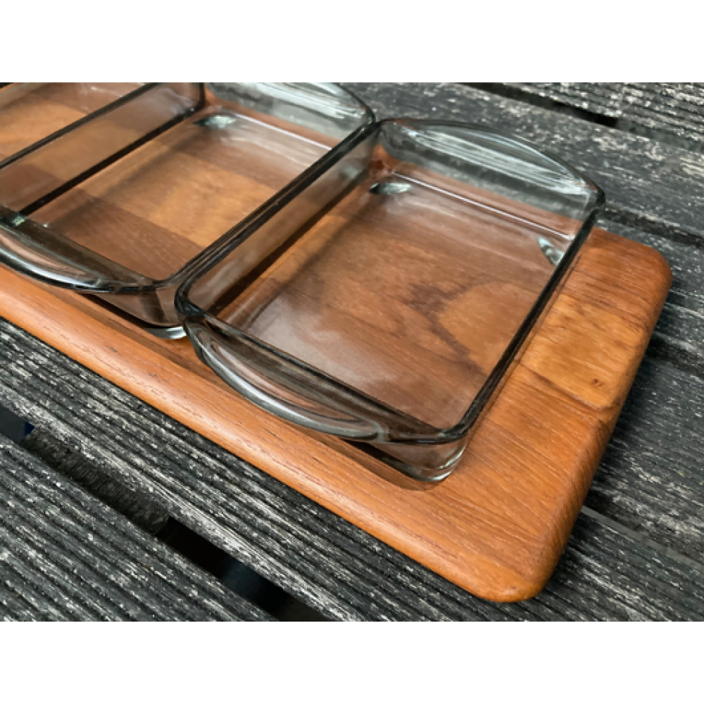 Dit is een mooi dienblad met schaaltjes voor snacks.