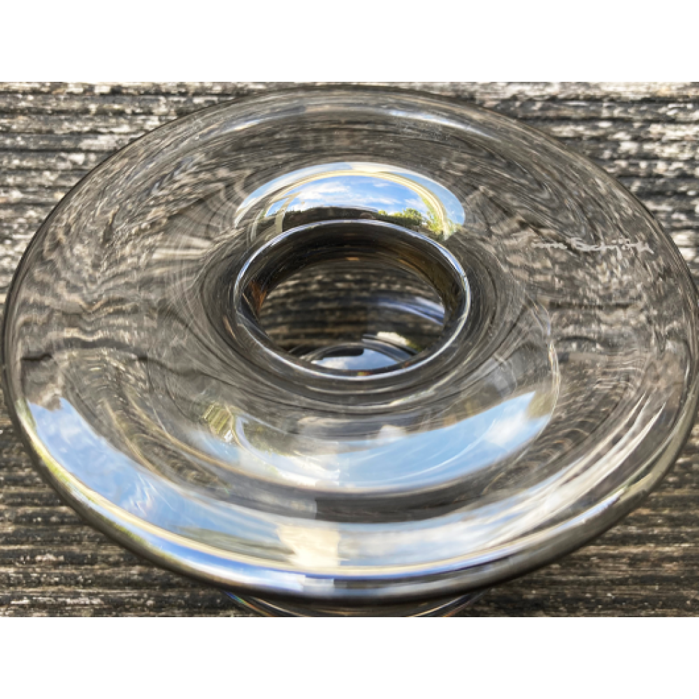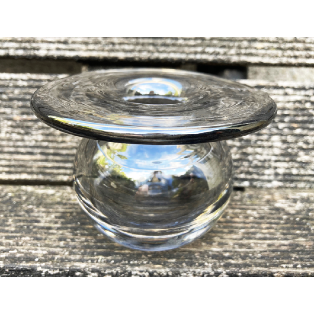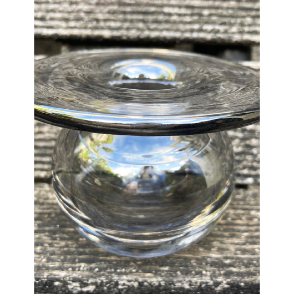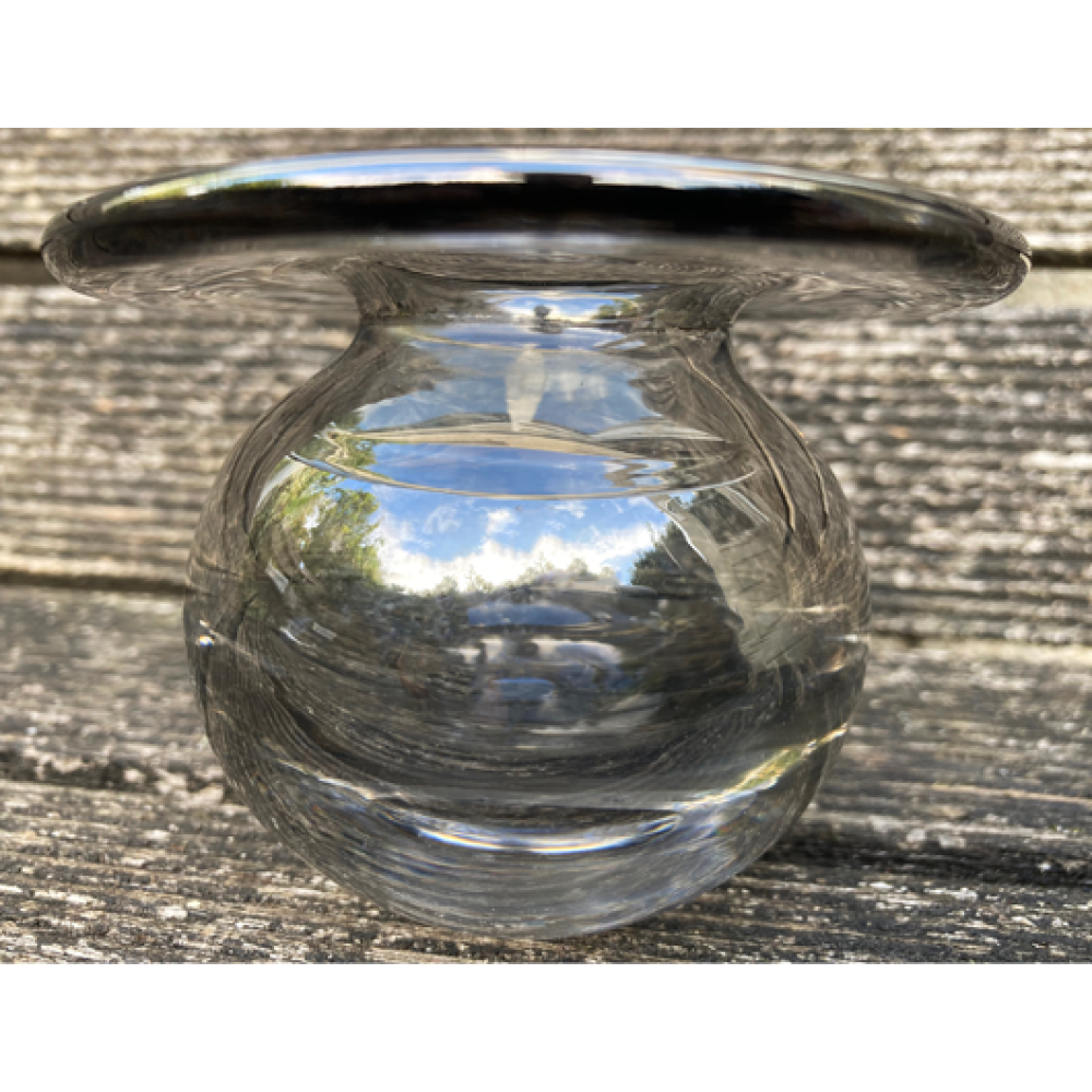 Dit vaasje is gemaakt bij de Magnor glasfabriek in Noorwegen.