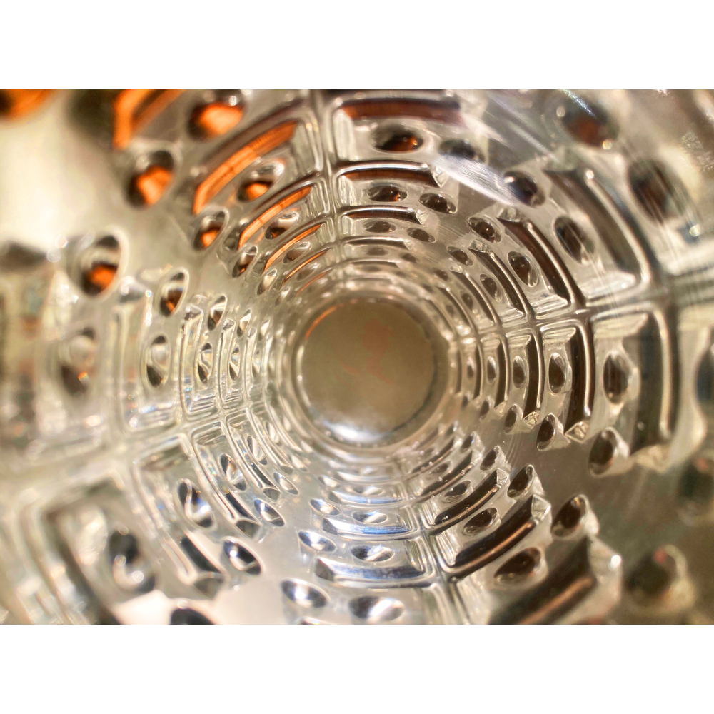De ontwerpen van deze ontwerper kenmerken zich vooral door het gebruik van optische kwaliteit glas.