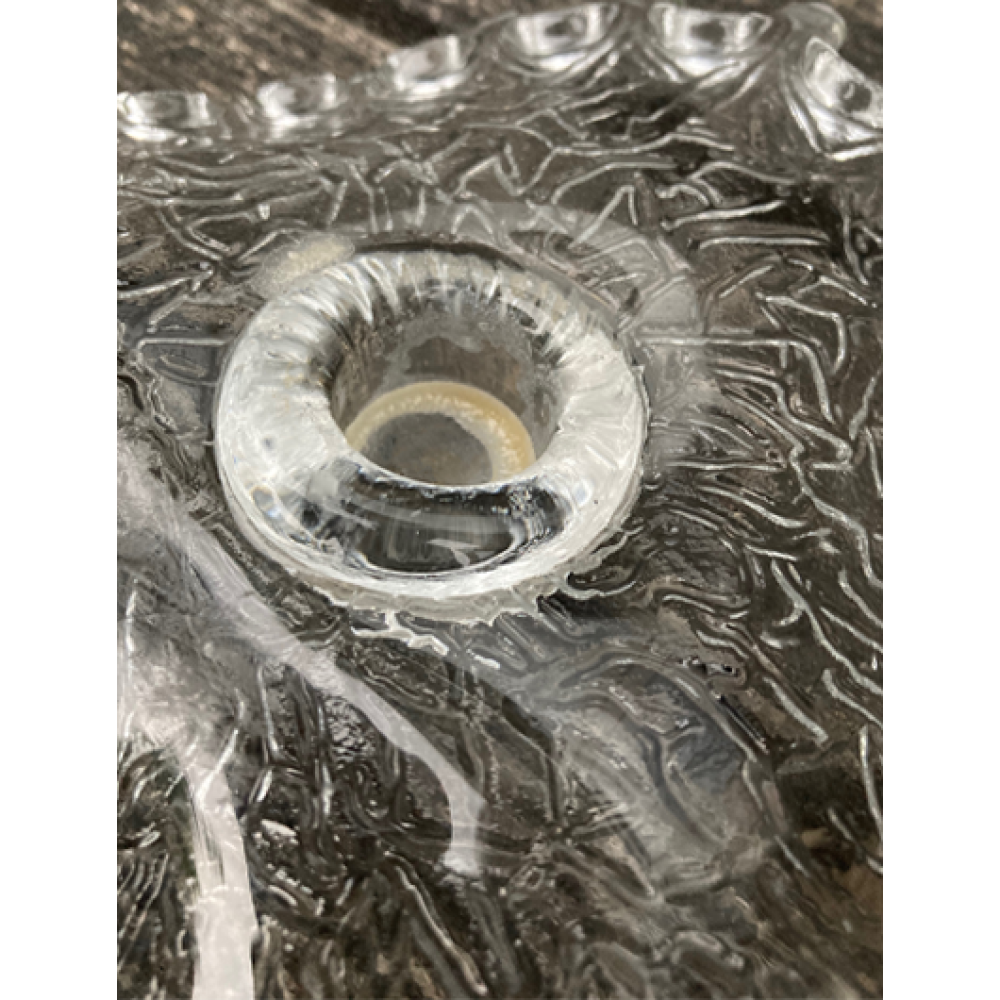 Deze kandelaar is gemaakt bij Hadeland Glassverk in Nnoorwegen.