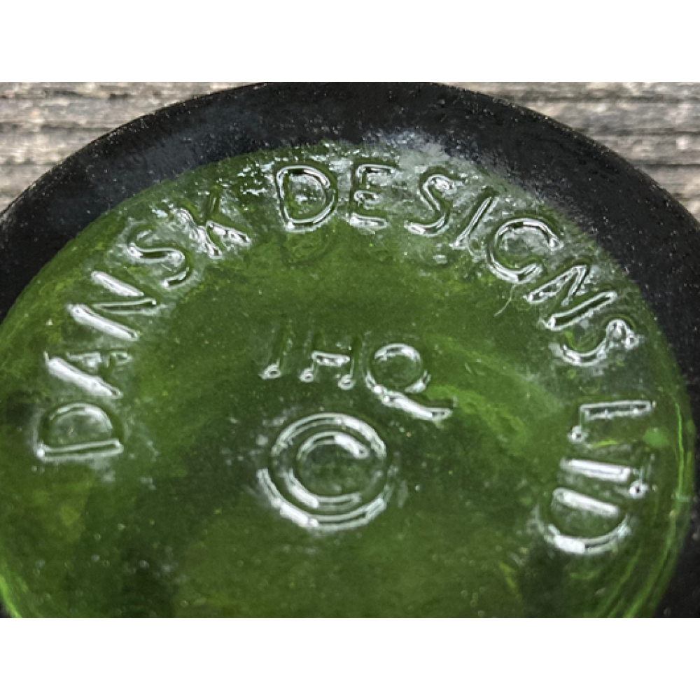 Groen glazen kandelaar geproduceerd door Dansk Design Denmark.