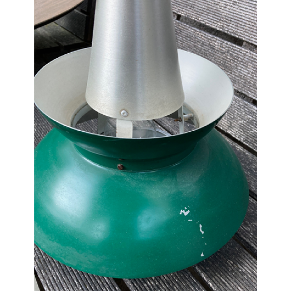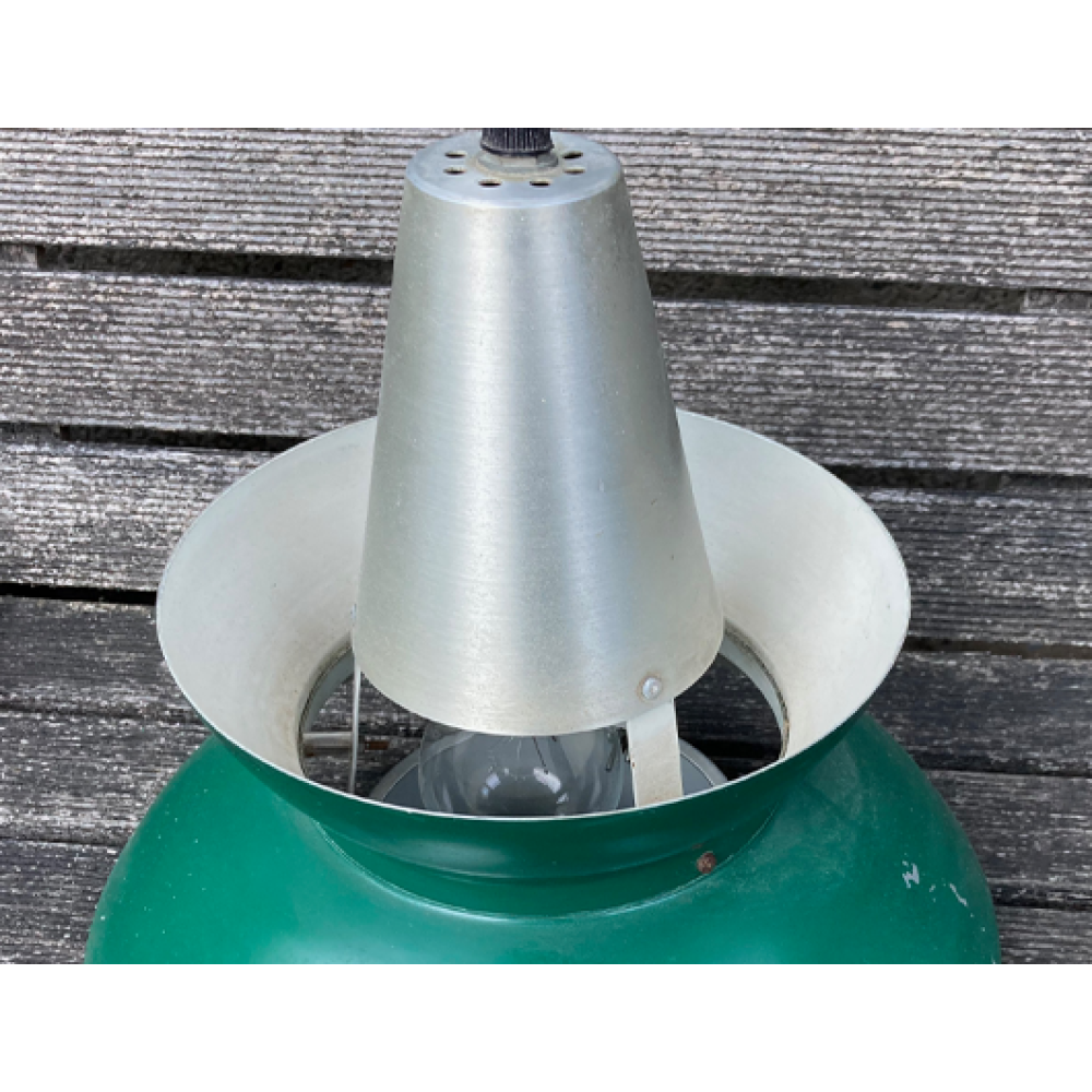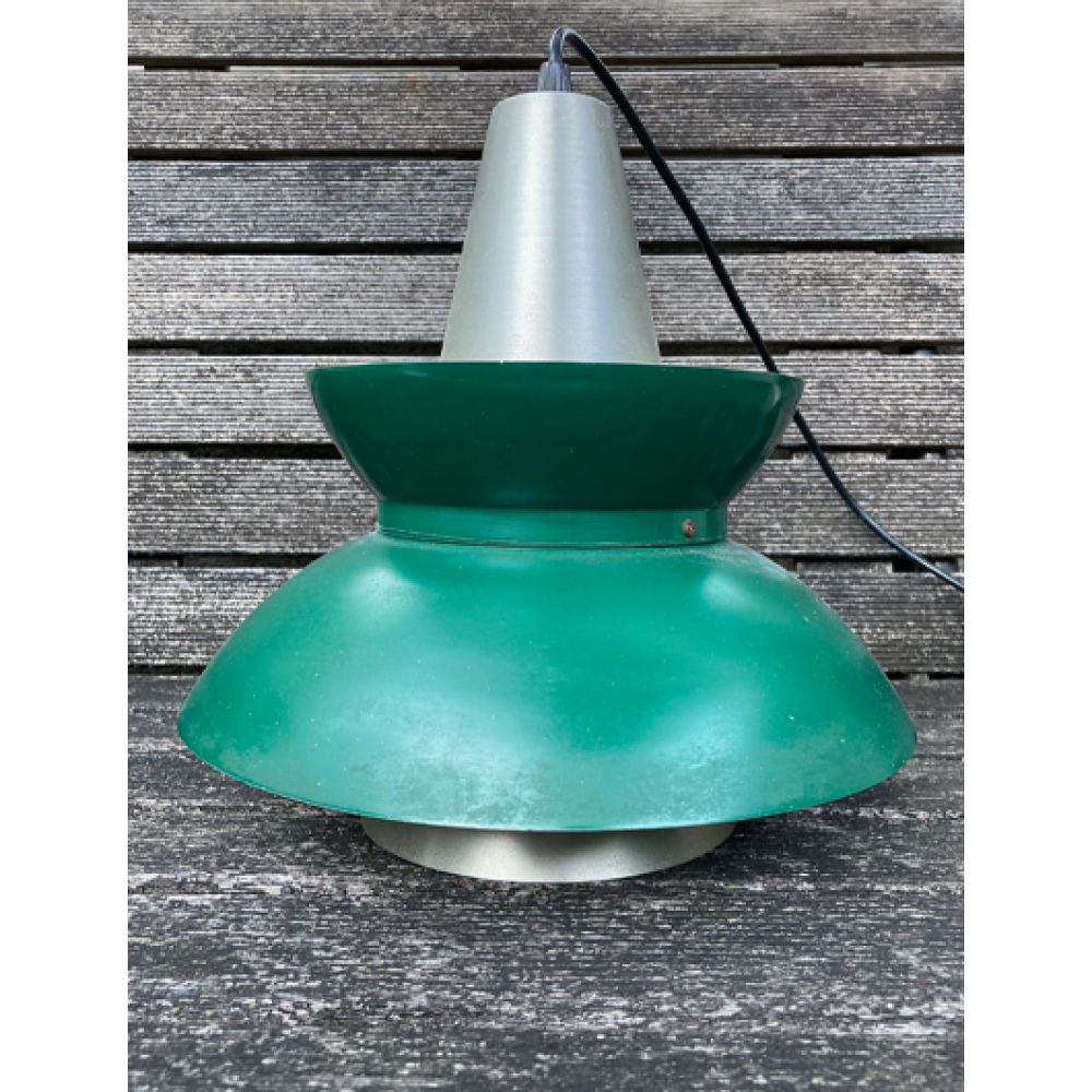 Deze groene hanglamp is echter de oude versie en toont veel gebruikssporen op het gevrfde gedeelte.