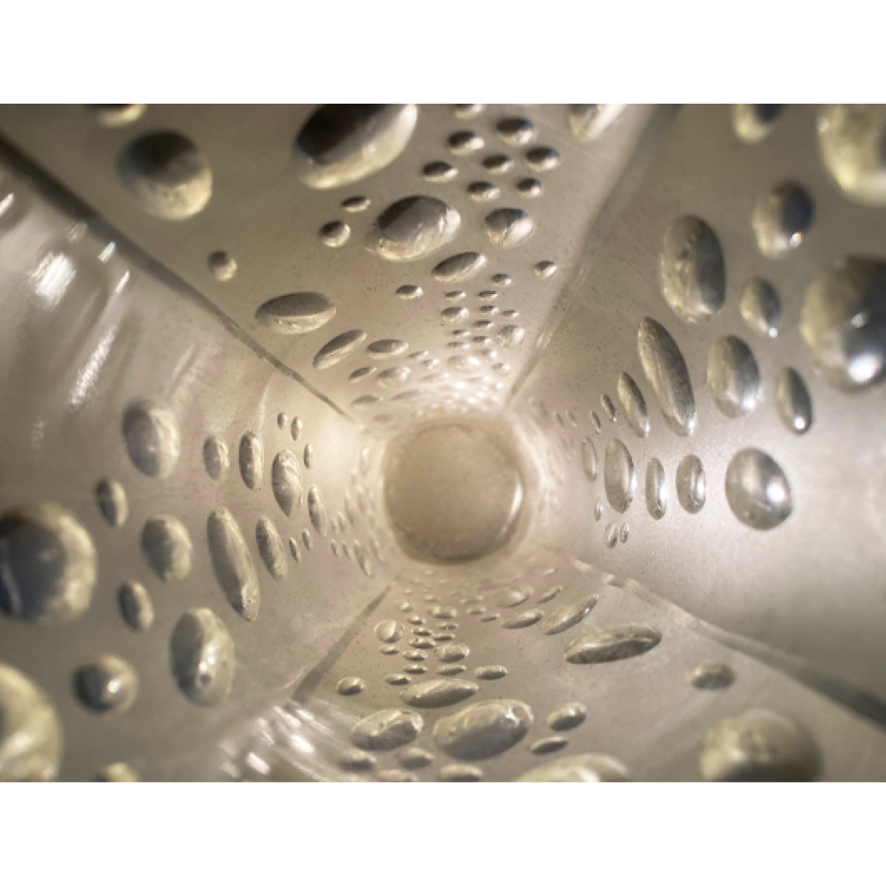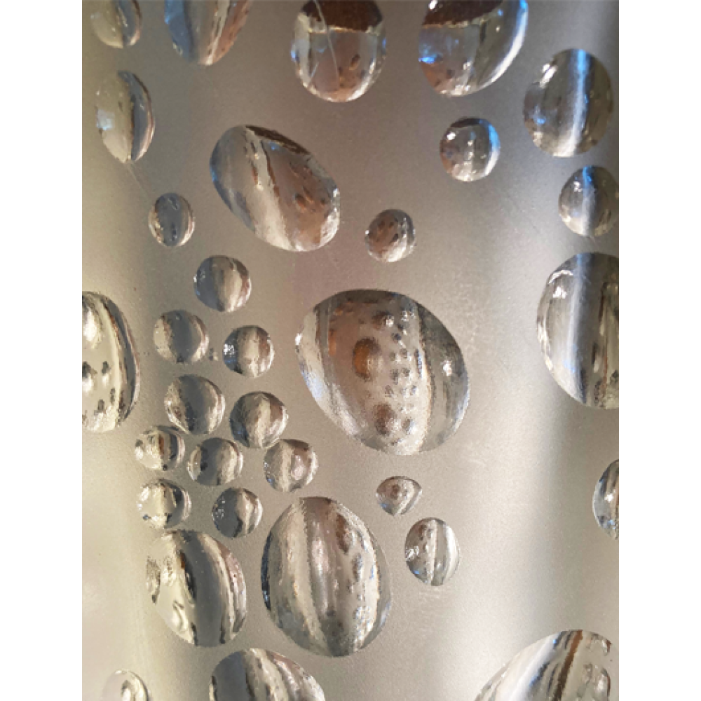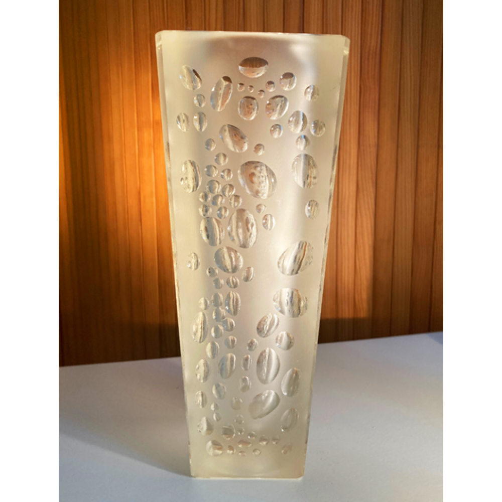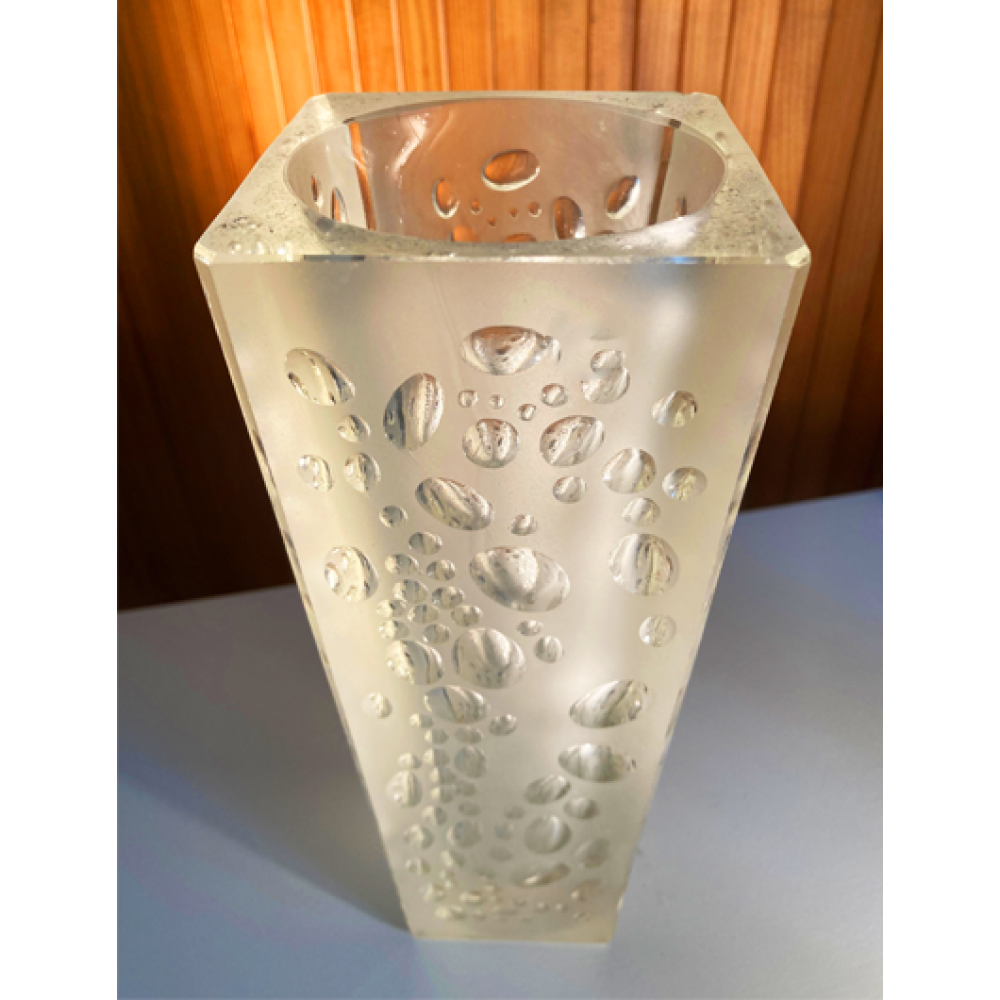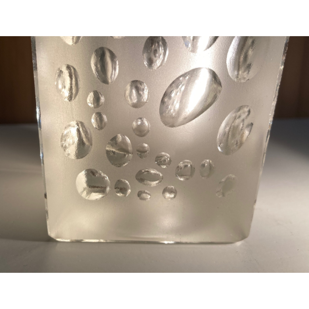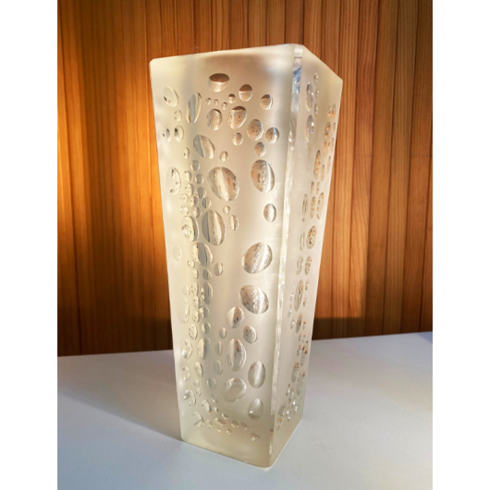 Hij is gemaakt van loodkristal en heeft helder geslepen facetten in een onregelmatig patroon.