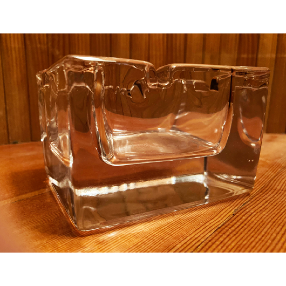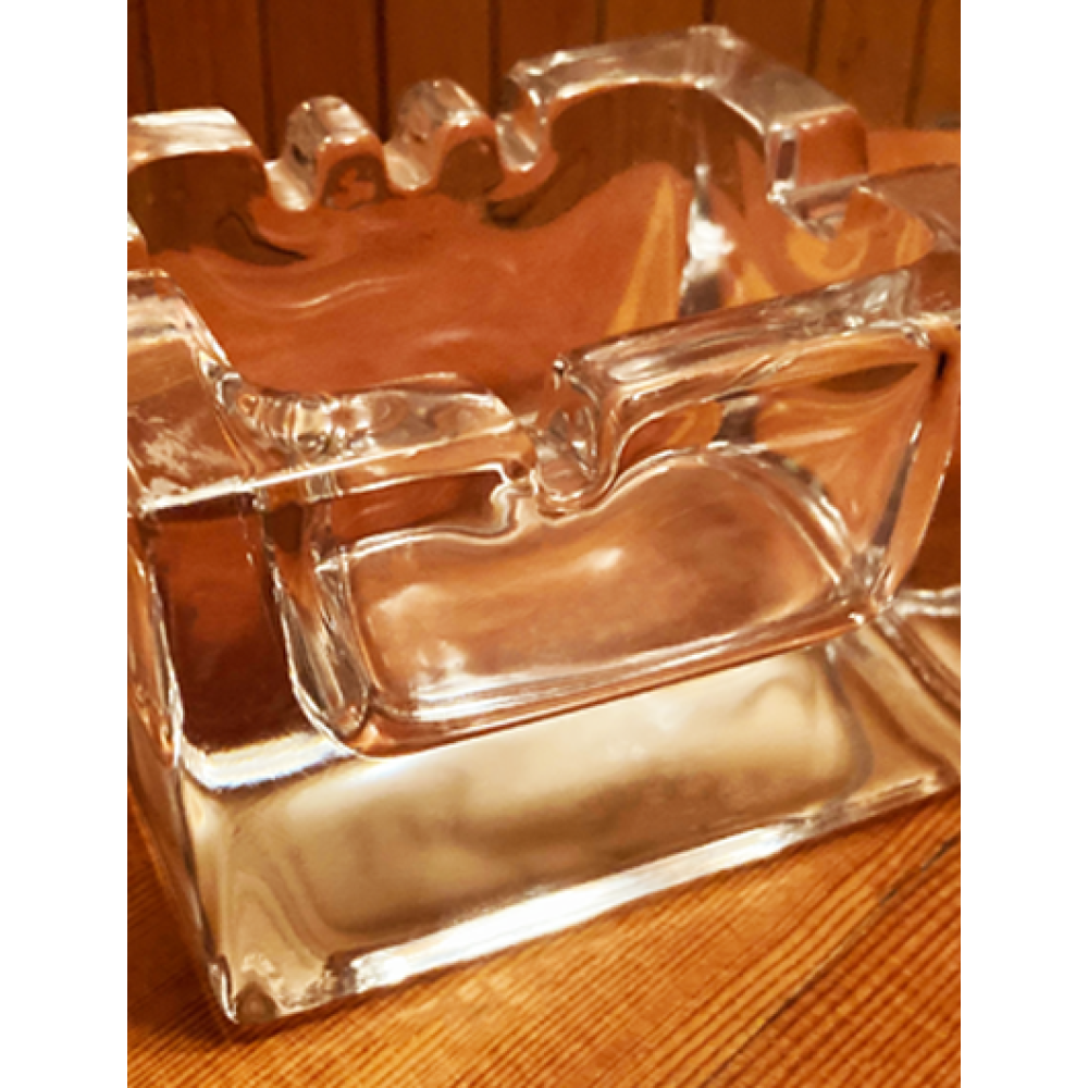 Deze glazen asbak is gemaak bij de Nuutajarvi Glasfabriek in Finland tussen 1960 en 1969.