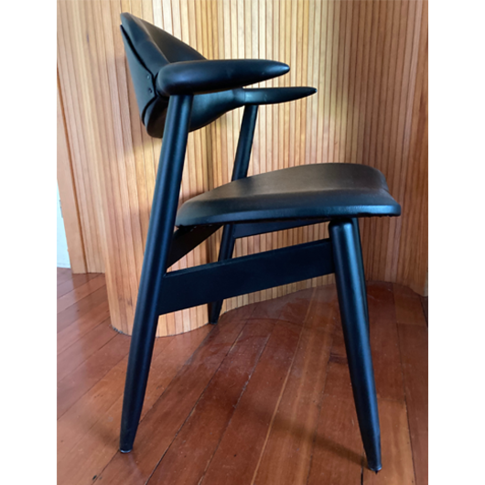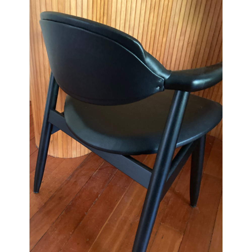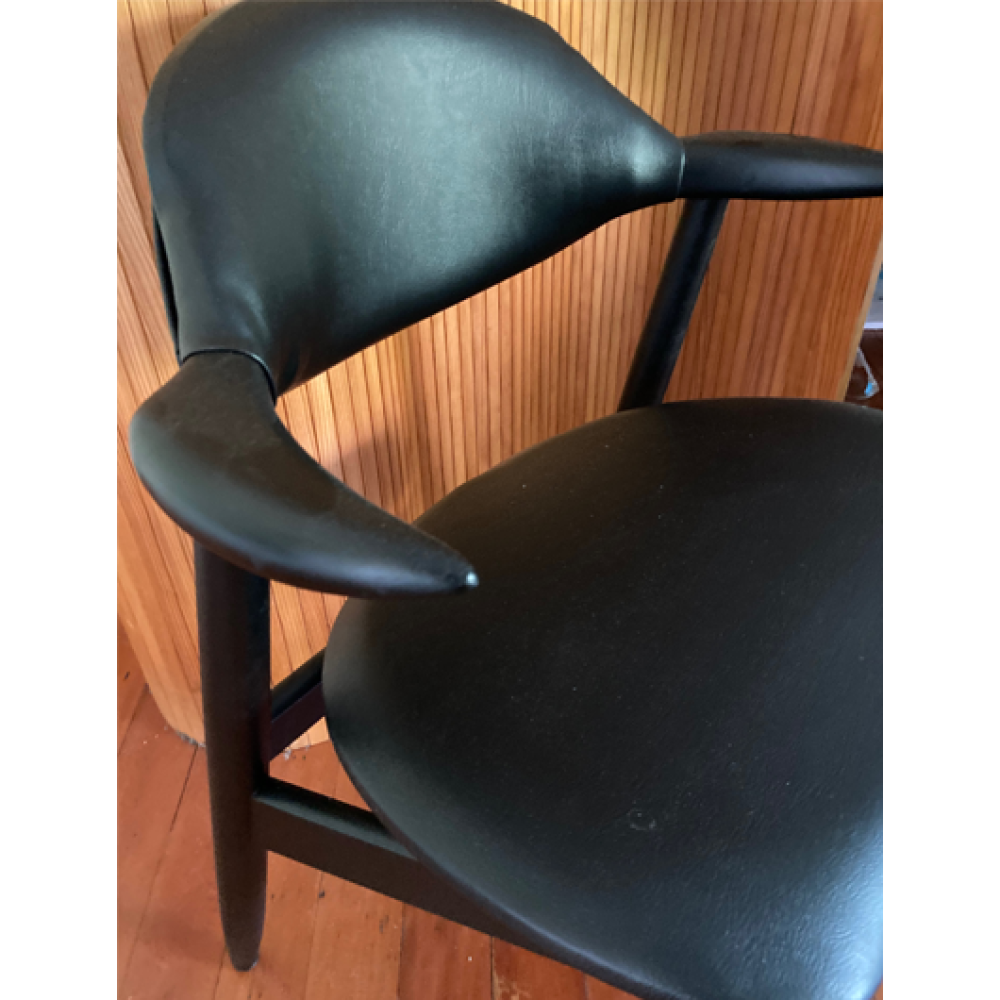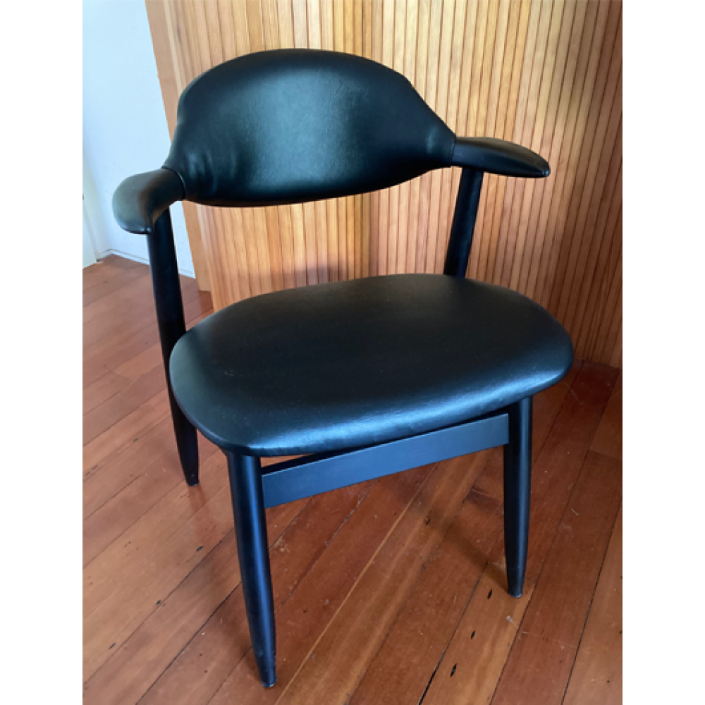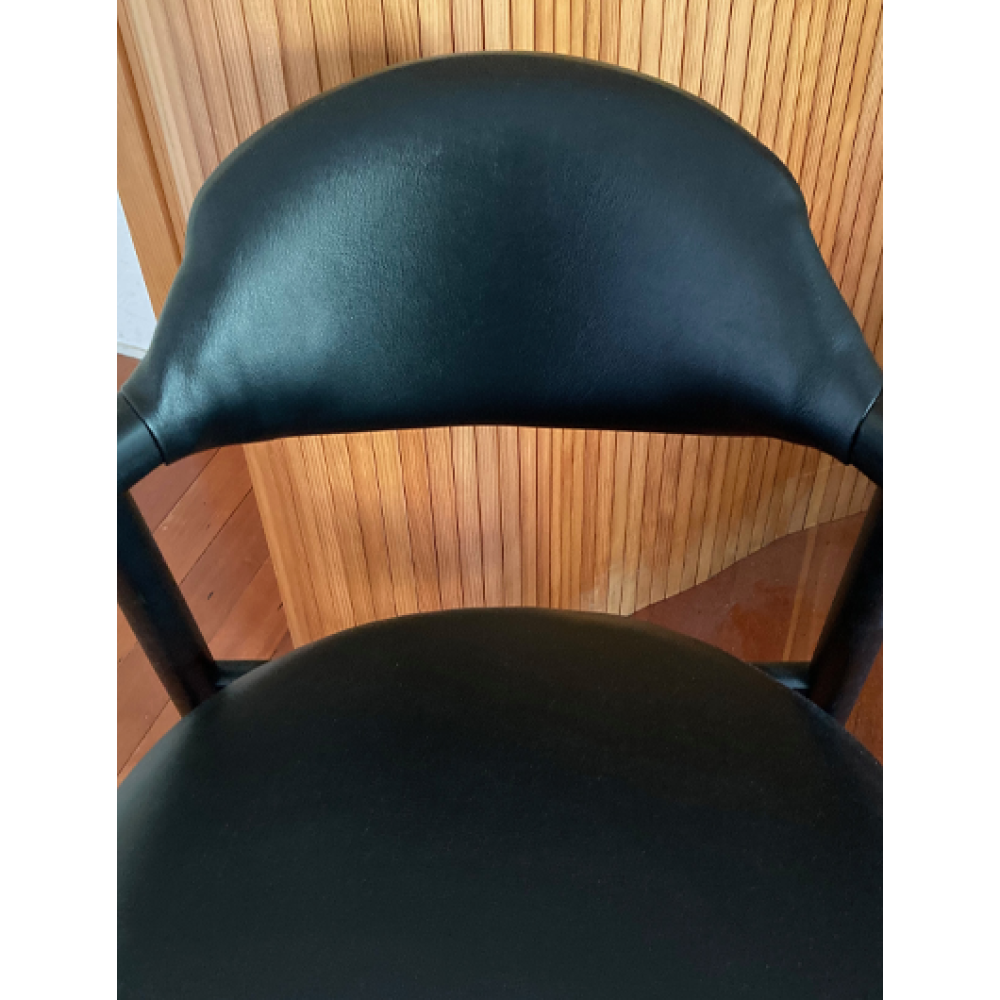 Zitting en rugleuning zijn recent bekleed met zwarte skai.