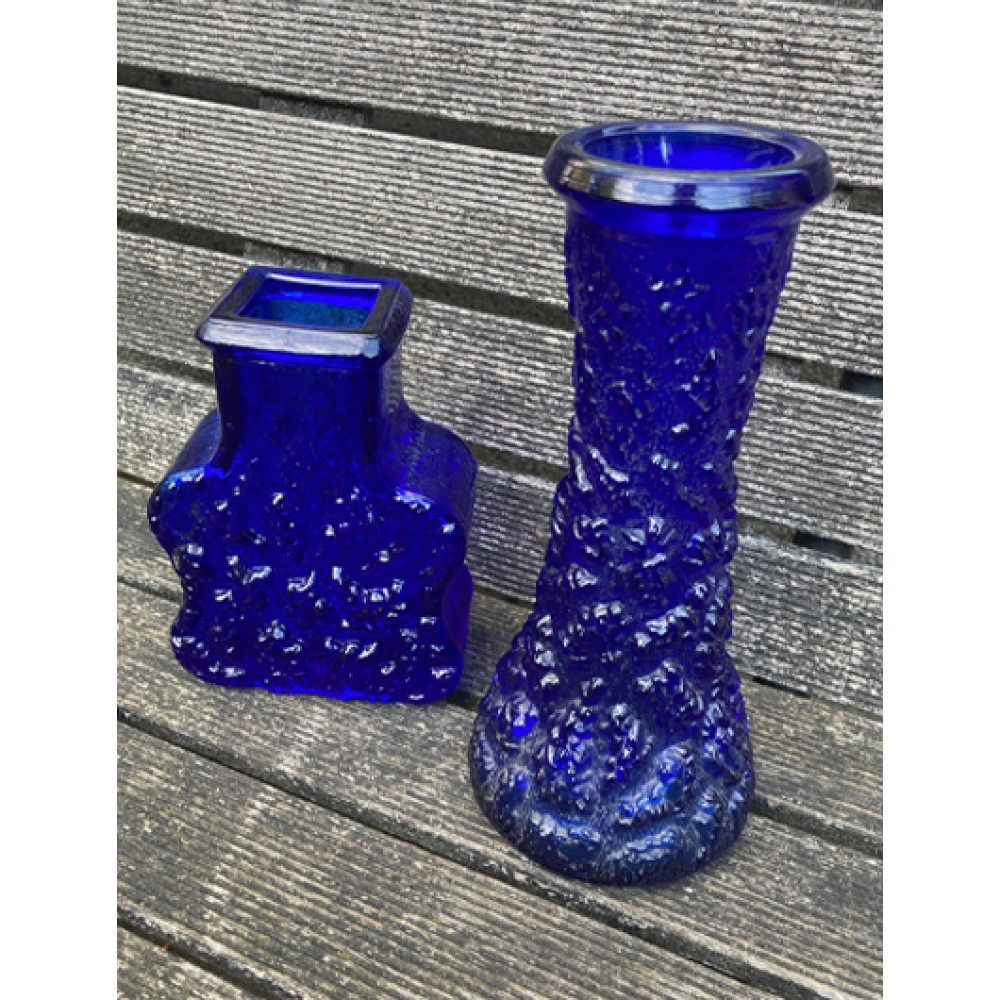 Glazen kobaltblauwe vazen ontworpen door Lars Hellsten voor Skruf Glasbruk Zweden.