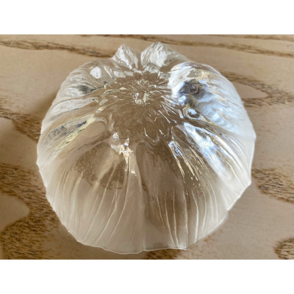 Gebaseerd op de anemoonbloem, is het glazen stuk rond de randen gematteerd, waardoor een prachtig contrast ontstaat met de heldere basis.