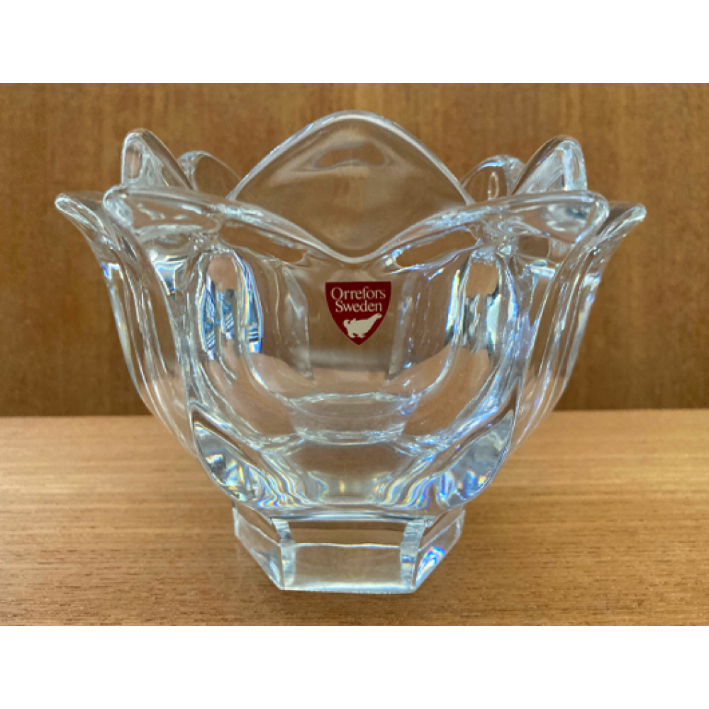 Deze schaal komt van de Orrefors glasfabriek in Sweden.