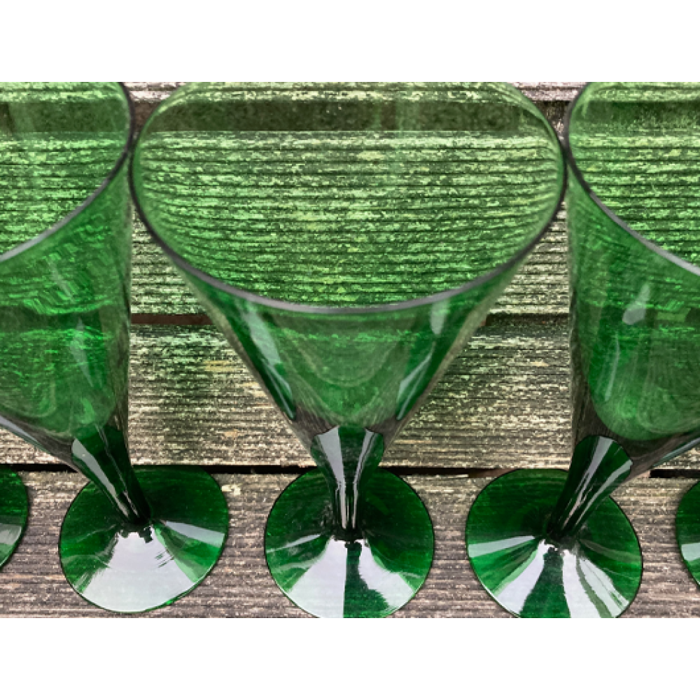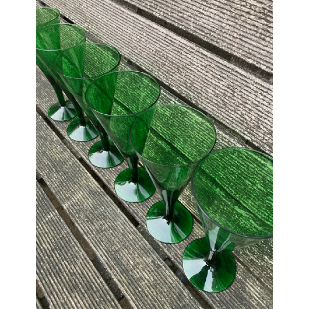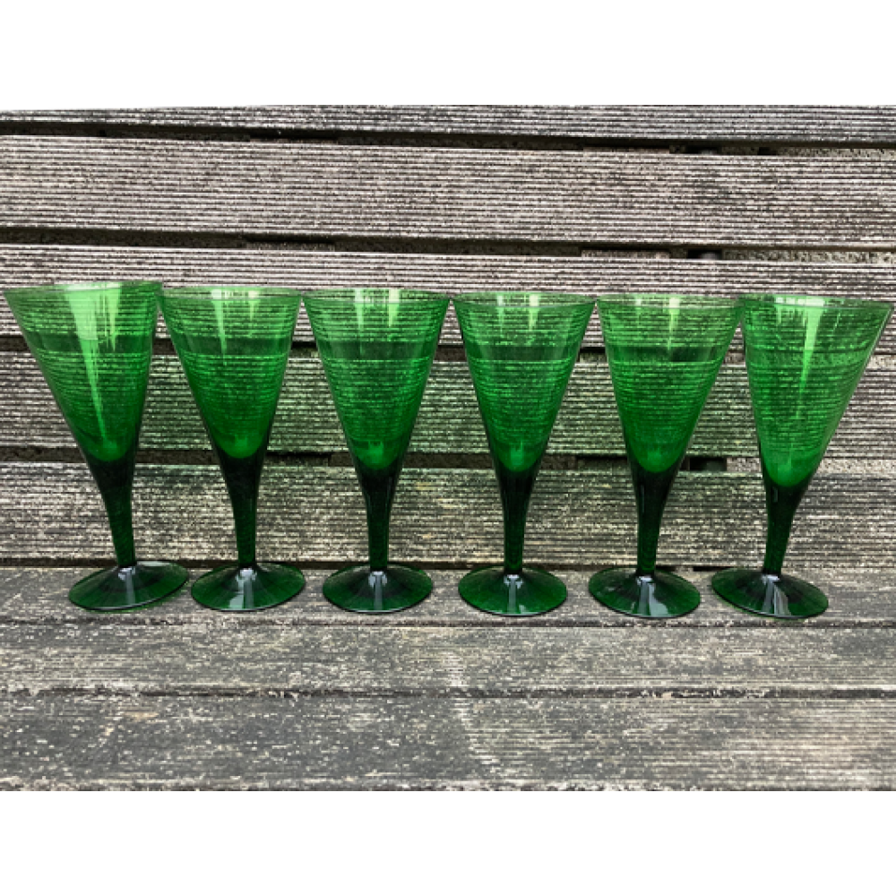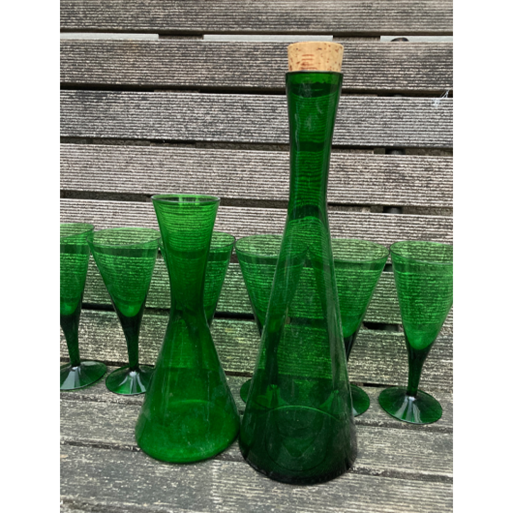 Groene glazen karaf en zes glazen uit de Winston Serie (ook wel Aedelgron Serie genoemd).