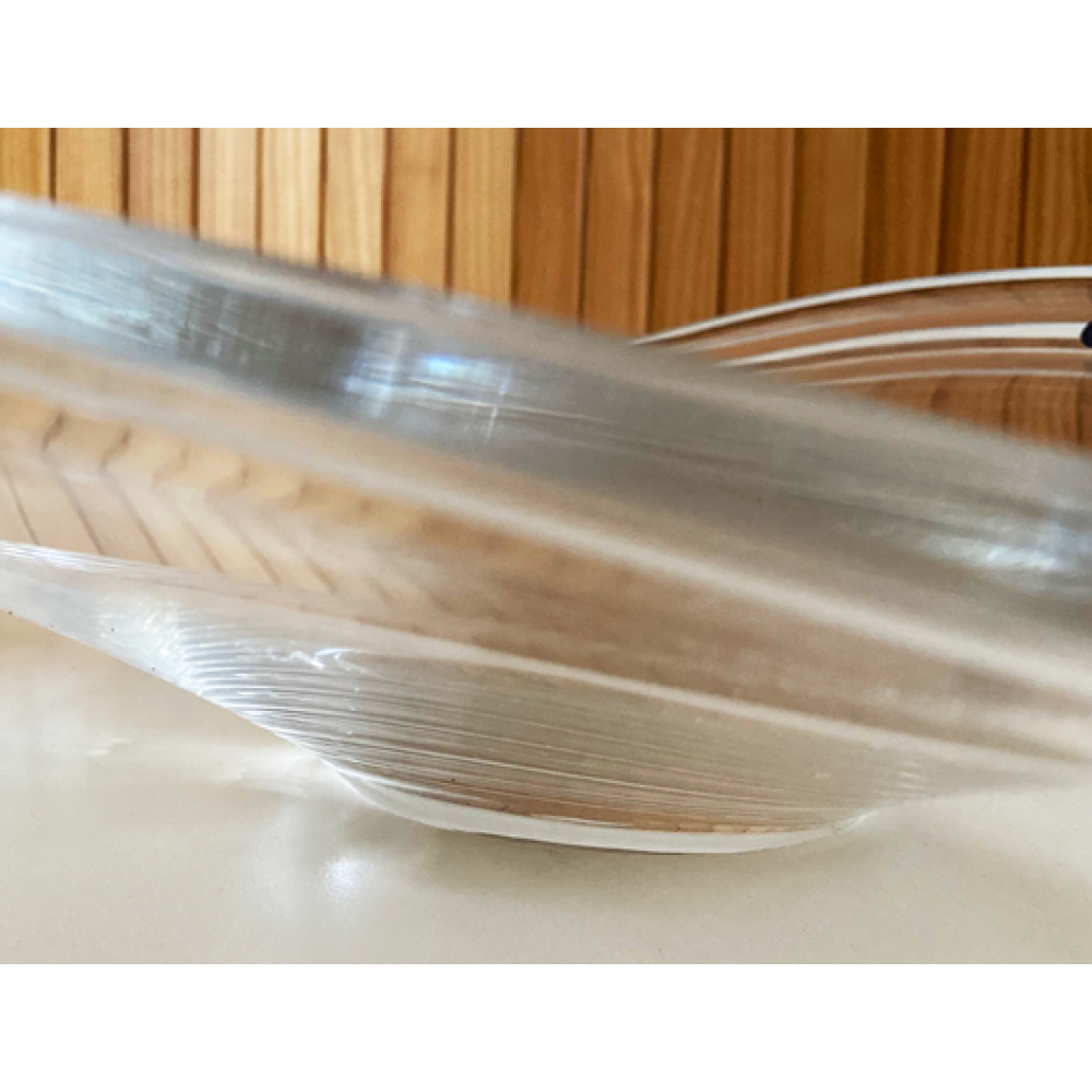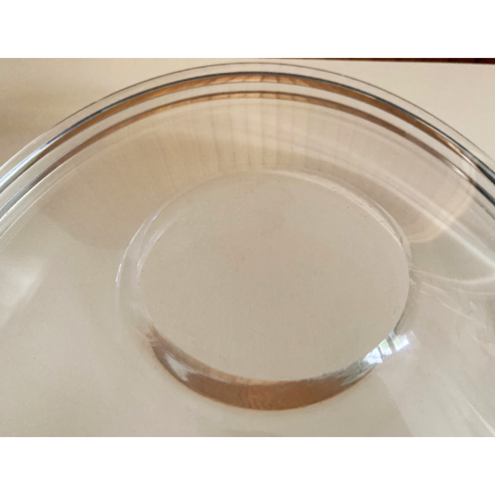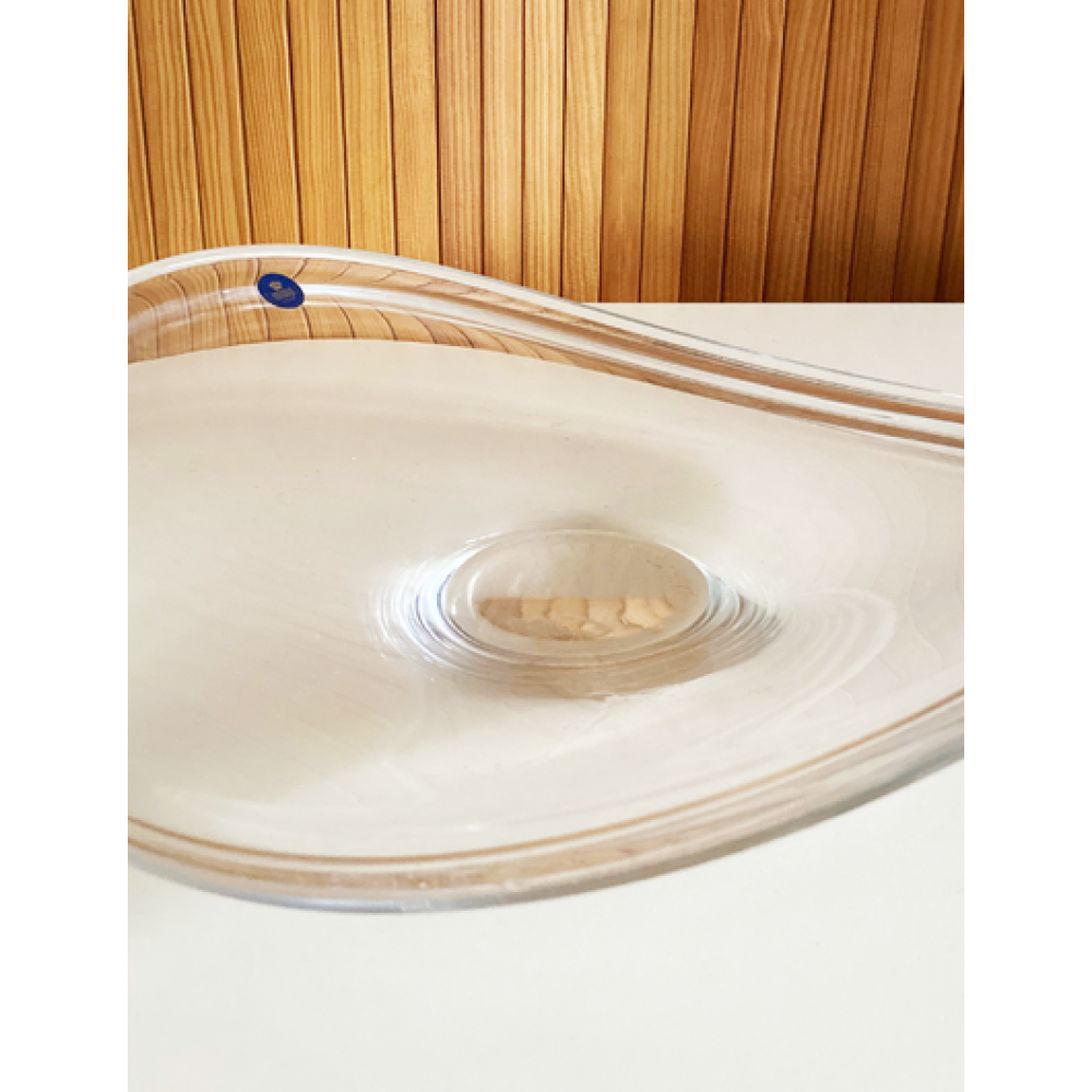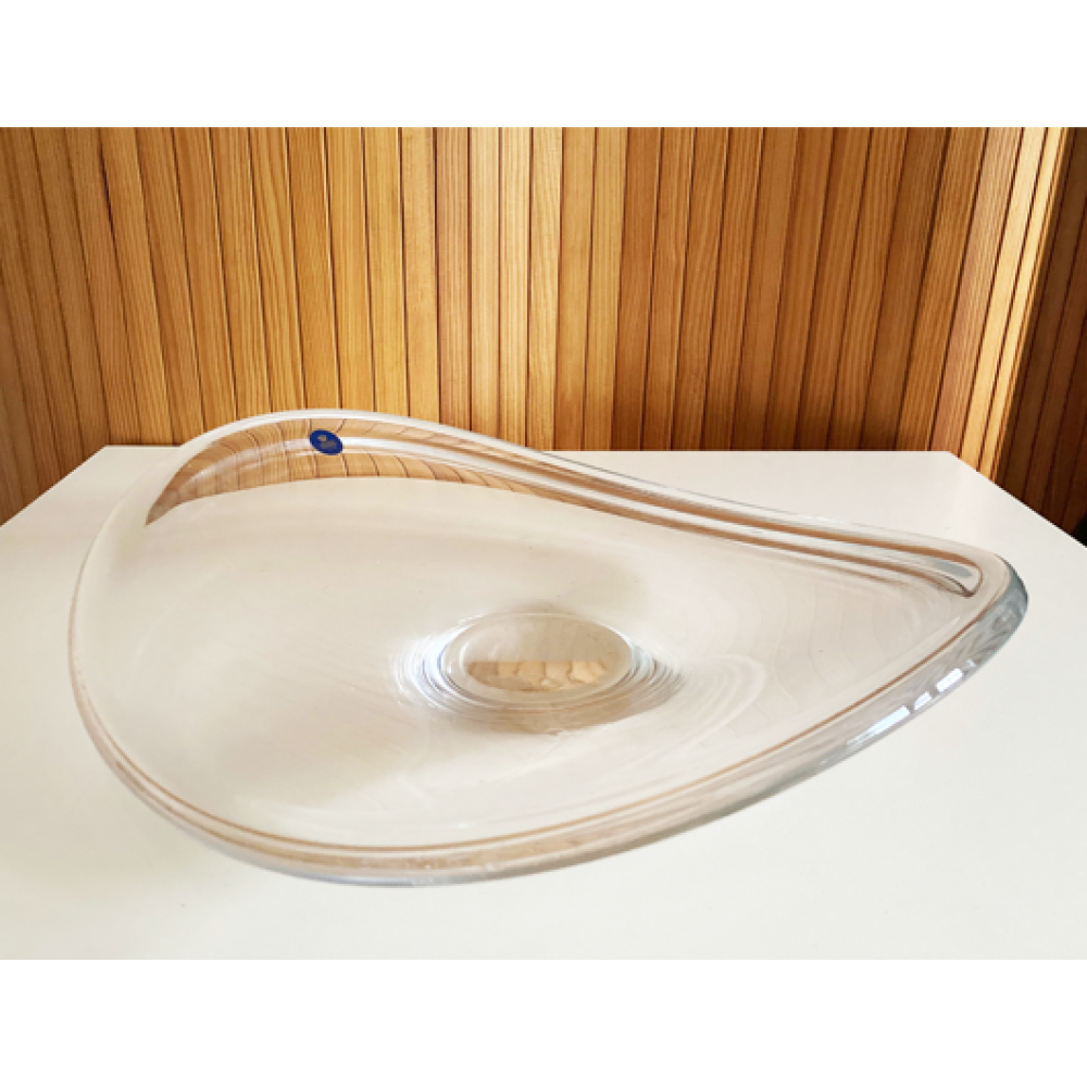 Deze grote glazen schaal is een ontwerp van Per Lütken uit.1960.
