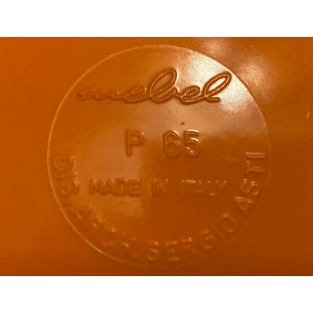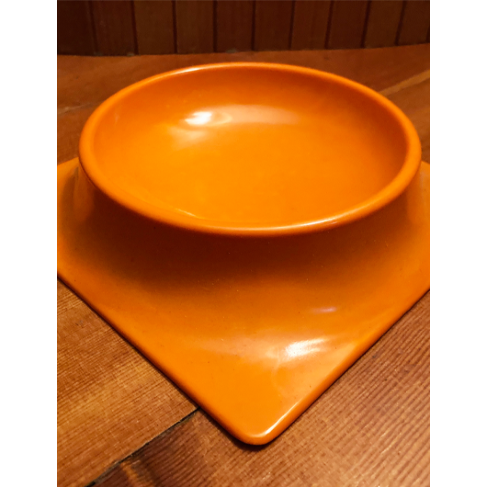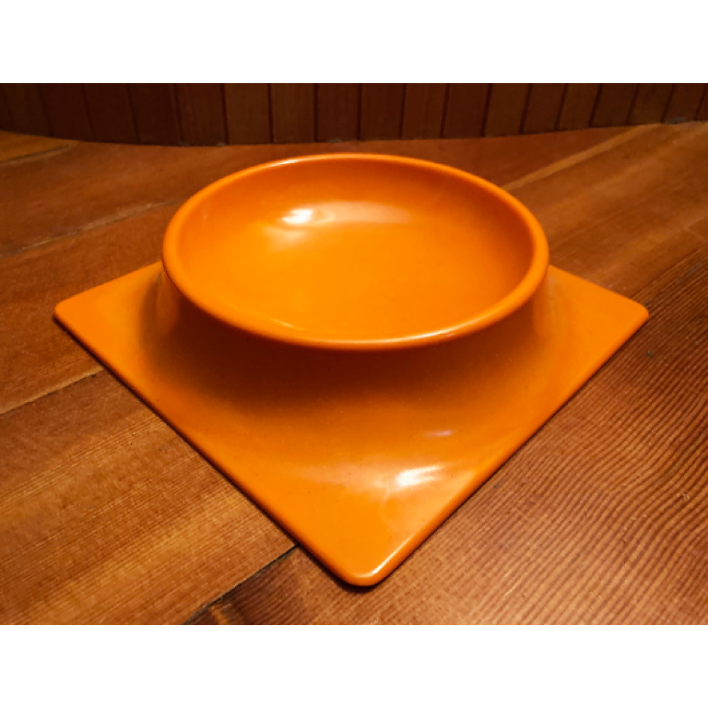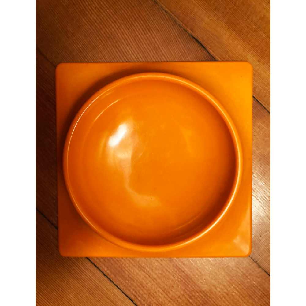 Deze asbak van oranje melamine is gemaakt door de firma Mebel uit Italië.