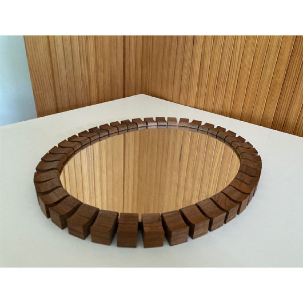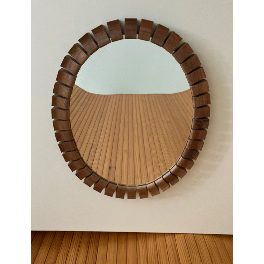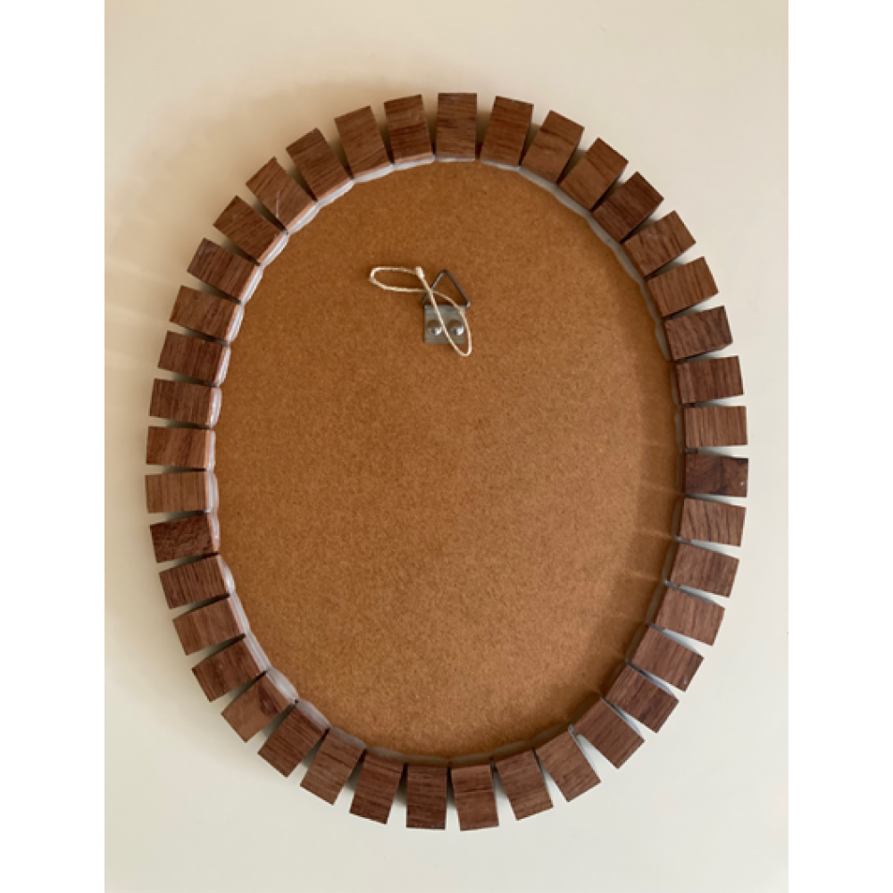 Jaren 60 70 ovale spiegel met een aparte rand van teakhout