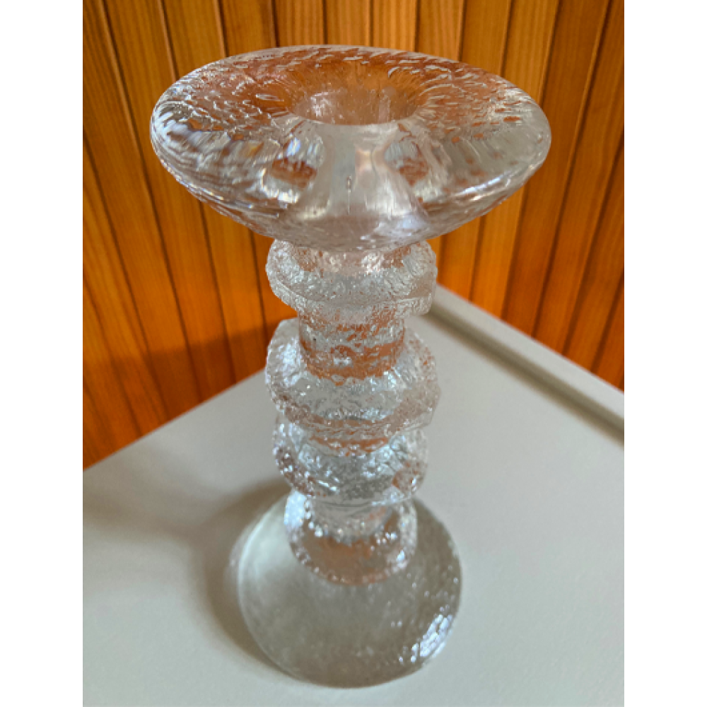 Deze kandelaar is ontworpen in 1967 door Timo Sarpaneva voor de finse glasfabriek Iittala.