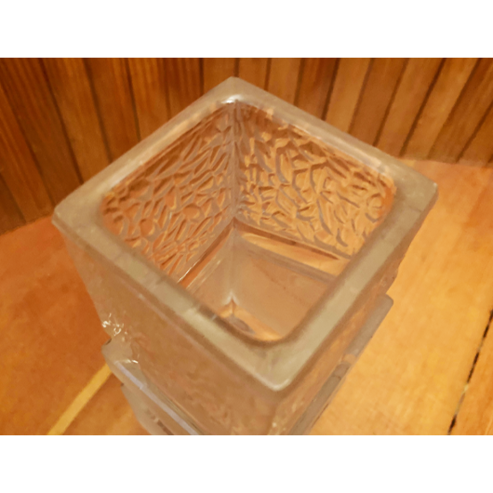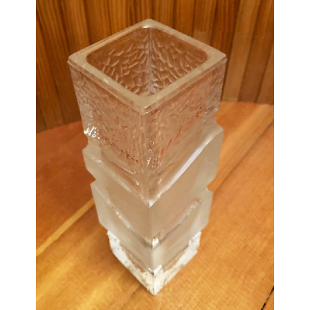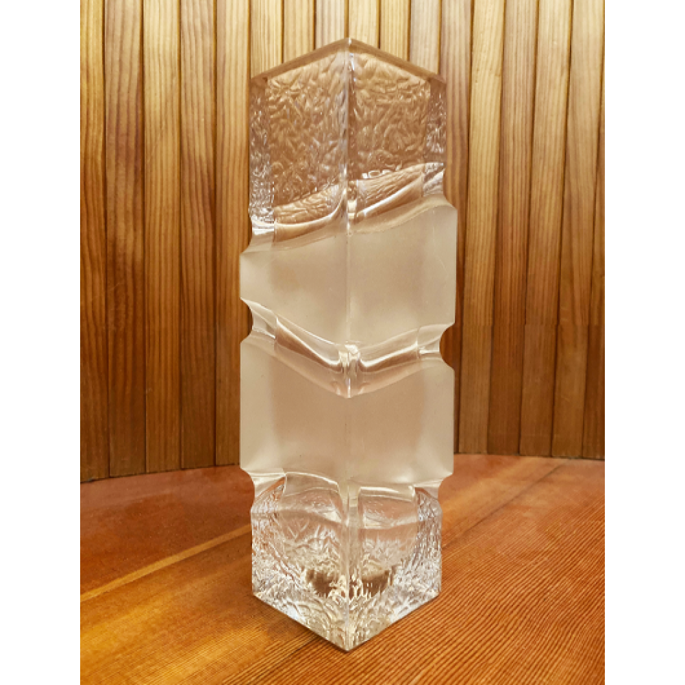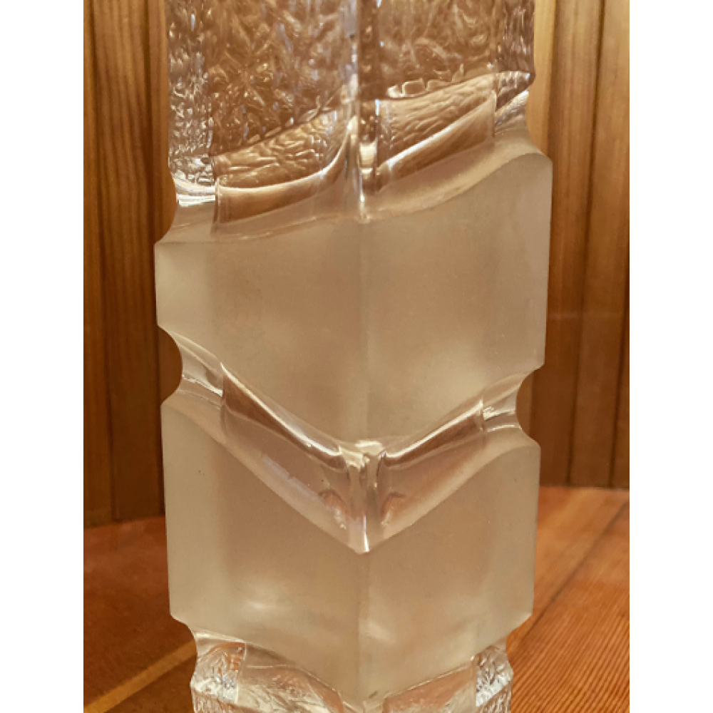 Zware kristallen vaas uit de jaren 70, aan de buitenzijde gebeiteld en geëtste matte delen.
